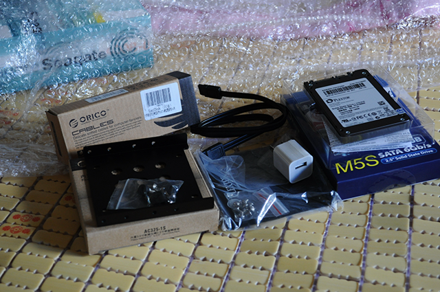 打开包装,里面除了M5S主角以后,还是代理附送的支架和苹果头。虽说代理是厚道一下,但是可悲的是我之前已经在X东上买了一个支架,19元啊,好心痛,不过我自己买的那个支架比赠送的质量好多了,很厚实,质感很好,而附送的那个支架,边角切割的太次了,割手。另外我还购买了一个sata3数据线,来张全家福。