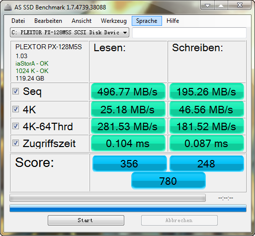 补:整个测试完了之后,闲的无聊,关闭节能之后又重新测了一遍AS SSD分数,这次的4K性能终于提升了一点,整个评分也上了800。