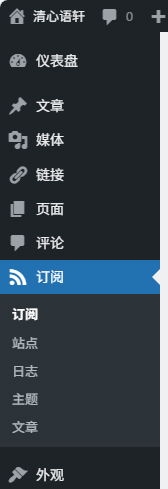 安装之后,还是有些小问题,比如订阅菜单的位置在仪表盘下面,影响观感,还有显示的RSS订阅内容字数太少等,下面是我对插件的一些小调整。