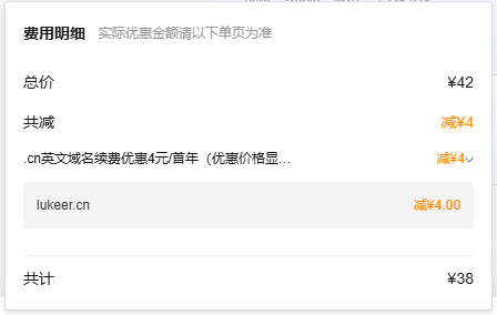 当年转入阿里云就是因为阿里云续费便宜,且转入域名可以略微便宜点点,查看了阿里云目前的续费价格,是42-4=38元,比25年3月续期时又贵了3元。